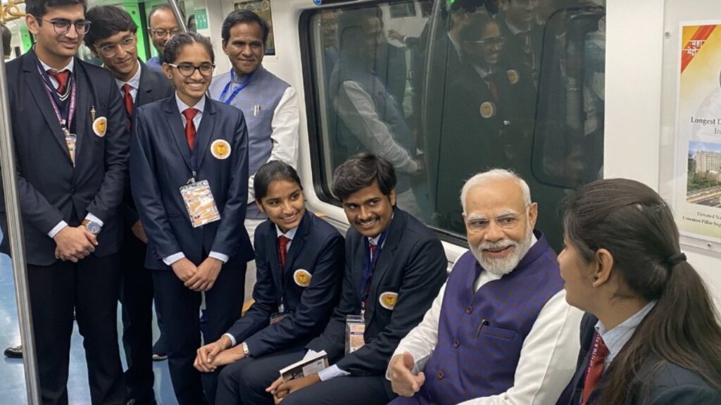 ഫ്ളാഗ് ഓഫിന് ശേഷം ഫ്രീഡം പാര്ക്കില് നിന്നും അദ്ദേഹം ഖാപ്രിയിലേക്ക് മെട്രോയില് യാത്ര ചെയ്തു. മെട്രോയില് യാത്രയ്ക്കായി എത്തിയ പ്രധാനമന്ത്രി കൗണ്ടറില് നിന്നും ടിക്കറ്റ് എടുത്താണ് മെട്രോയില് കയറിയത്. യാത്ര സമയത്ത് ഒപ്പം യാത്ര ചെയ്ത വിദ്യാര്ഥികളോടും മറ്റ് യാത്രക്കാരോടും വിശേഷങ്ങള് തിരക്കുവാനും അദ്ദേഹം സമയം കണ്ടെത്തി. ഇതിന്റെ വീഡിയോ ദൃശ്യങ്ങള് ബി ജെ പി പുറത്ത് വിട്ടു. മെട്രോ യാത്ര സുഖകരവും സൗകര്യപ്രദവുമാമെന്നും നാഗ്പൂരിലെ ജനങ്ങളെ അഭിനന്ദിക്കുന്നതായും അദ്ദേഹം ട്വീറ്റ് ചെയ്തു.