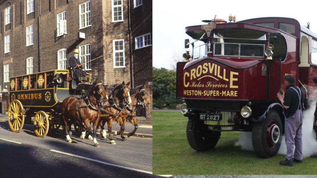 ആദ്യ കാല ബസുകള് 8 പേര്ക്ക് സഞ്ചരിക്കാവുന്നവ ആയിരുന്നു.’കരേസസ് എസിങ്ക് സോള്ഡ്’ എന്നായിരുന്നു അവയെ വിളിച്ചിരുന്നത്. പ്രഭു കുടുംബത്തിലുള്ളവര്ക്ക് മാത്രമല്ല ഫ്രാന്സിലെ ലൂയി പതിനാറാമന് ചക്രവര്ത്തിയും കാര് ഉപേക്ഷിച്ച് ഈ ബസില് യാത്ര ചെയ്യാന് ഇഷ്ടമായിരുന്നു. പക്ഷേ ഈ ആവേശം അധിക നാള് നീണ്ടുനിന്നില്ല.